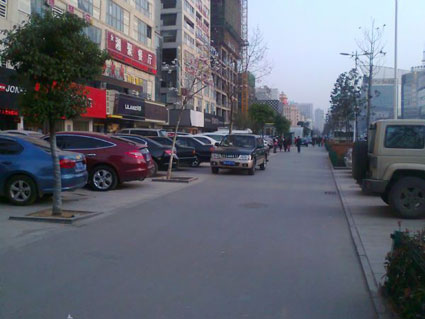 在市區(qū)繁華商業(yè)區(qū)由于缺少地下停車場,路兩邊就成了一些車主的臨時(shí)停車場所。在一些大型商場、超市廣場前都會(huì)看到一排整齊停放的電動(dòng)車、自行車,這些多是商場超市的員工停放的。由于沒有其他停車場所,商場的員工和一些市民就將車輛沿路停放在馬路邊。