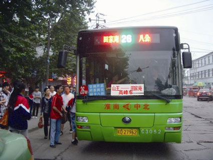 26路:隸屬于淮南中北巴士公司的客運三車隊,在每天的早晨和中午分別增派2臺26路車作為高峰車,將原本運行至八公山區(qū)政府的26路公交車延伸至山王。