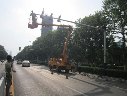 圖:交警部門工作人員在安裝新的電子監(jiān)控設(shè)備