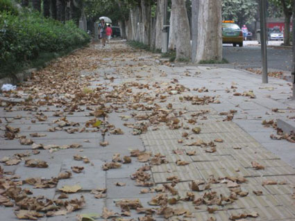 在市民的記憶里,這種樹(shù)木的落葉時(shí)間一般都出現(xiàn)在10月以后。目前,這些仍顯得郁郁蔥蔥的懸鈴木為何會(huì)出現(xiàn)大量的落葉?若按季節(jié)計(jì)算,懸鈴木的落葉時(shí)間比往年正常落葉的時(shí)間提前了兩個(gè)多月。對(duì)于這一現(xiàn)象,記者采訪了園林專家,專家告訴記者,懸鈴木在8月中旬出現(xiàn)落葉情況,這的確是一種罕見(jiàn)的現(xiàn)象。這種樹(shù)木之所以出現(xiàn)不正常的落葉現(xiàn)象,究其原因,一是因?yàn)榛茨鲜羞B續(xù)出現(xiàn)高溫,二是多日無(wú)明顯降雨,這兩方面的原因是造成懸鈴木出現(xiàn)落葉的根本。園林專家說(shuō),懸鈴木雖然在不該落葉的時(shí)間出現(xiàn)這種不正常的落葉現(xiàn)象,但對(duì)樹(shù)木生長(zhǎng)不會(huì)有多大的危害。