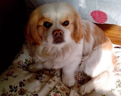 “我的‘仔娃’是獨(dú)一無二的,他是可卡和京巴的串串,眼睛和耳朵是黃色的毛,背上是黃白相間,肚皮則是白色的,最特別的是它的頭頂有一小撮黃色的毛,就像是一個(gè)眉眉翹!薄敖献忧唷痹敿(xì)地說明了“仔娃”的外貌,她希望有知道線索的朋友打電話13966474886或是加QQ738789305(江南子青)告知,她將萬分感激。