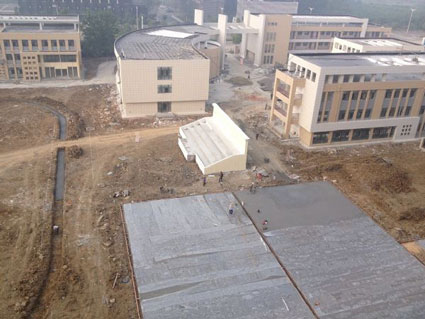 圖:正在建設(shè)籃球場(chǎng)和跑道的小學(xué)外景