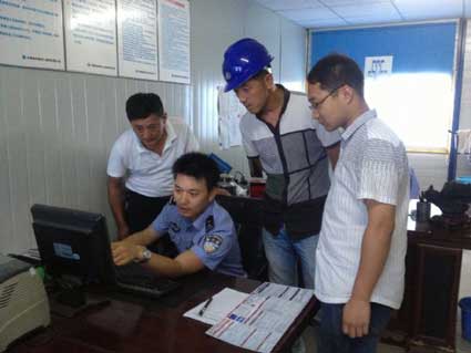 當天8時許,淮南市公安交通管理局公路巡邏大隊宣傳中隊警官周寅來到中建四局六公司淮南分公司淮師附小項目部,他此行的目的是為了給工地的工人們辦理年審車輛等業(yè)務,據(jù)項目部負責人稱,“因天氣炎熱,工人們?nèi)ナ熊嚬芩陮徏春臅r又耗精力,公路巡邏大隊的大隊長得知情況后,專門派民警進工地幫忙,省卻了工人們大熱天來回奔波的煩惱。