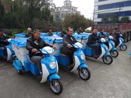 圖:26輛電動(dòng)保潔車分發(fā)到各個(gè)鄉(xiāng)村(社區(qū))