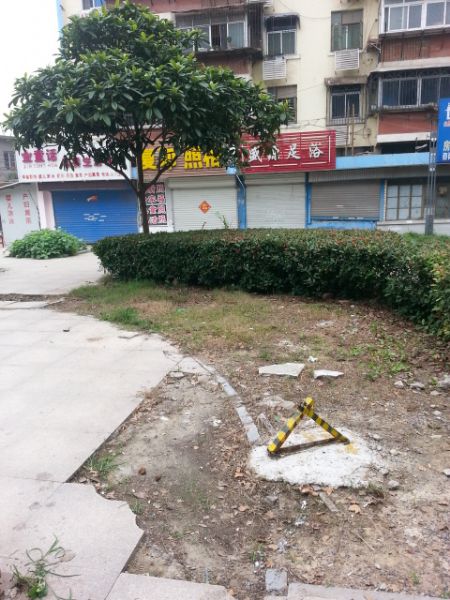 鐵路新村附近一綠化帶旁,有市民竟安裝了停車鎖。