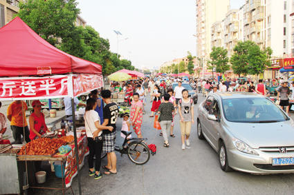 圖:每到下午4時以后,原本寬闊的道路變身“騎路市場”,擁擠不堪。