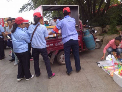 活動(dòng)之前,該局根據(jù)活動(dòng)當(dāng)天路段管理現(xiàn)場(chǎng)工作需要?jiǎng)澐至斯ぷ餍〗M,明確任務(wù)分工,實(shí)行城管隊(duì)員、環(huán)衛(wèi)工人、文明勸導(dǎo)員、安防人員、城管志愿者一體聯(lián)動(dòng),及早清理丁山村早菜市攤點(diǎn),采取“定人、定崗、定責(zé)”值守與機(jī)動(dòng)巡查相結(jié)合工作機(jī)制,加強(qiáng)對(duì)風(fēng)景區(qū)道路沿線以及文體中心路口、風(fēng)景區(qū)大門口等重點(diǎn)區(qū)域攤?cè)汗芾,?guī)范攤?cè)航?jīng)營(yíng)秩序。在活動(dòng)中,該局還實(shí)施活動(dòng)全程道路環(huán)衛(wèi)清掃保潔,確保攤?cè)航?jīng)營(yíng)有序,市容環(huán)境整潔。
