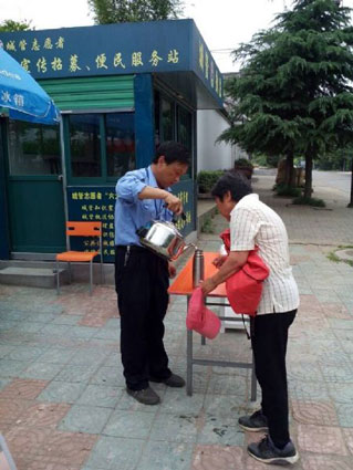 此外,該局還利用丁山路一處城管執(zhí)法崗?fù),安排城管志愿者值守,開展愛心服務(wù)活動(dòng)。志愿者們及早在崗?fù)?nèi)備置飲水機(jī)、打氣筒、旅游指南、椅子等一些日常生活服務(wù)工具,無償為過往行人和外來游客提供臨時(shí)休息、飲水打氣、交通咨詢等愛心服務(wù),切實(shí)為“大八公山旅游嘉年華”活動(dòng)增光添彩。