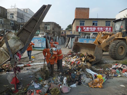 圖為大通區(qū)環(huán)衛(wèi)處徹底清理城區(qū)垃圾死角。