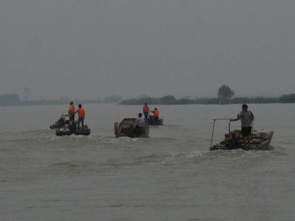 淮南市漁政處接到險情報告后,告知漁船先進行自救,立即報告淮南市農委,并向淮南市地方海事局田家庵海事處通報險情,啟動《淮南市漁政漁港監(jiān)督管理處漁業(yè)船舶水上安全突發(fā)事件應急預案》,指揮中國漁政34612號先行救助。中國漁政34612號快速駛往事發(fā)水域,漁政船通過高頻電話發(fā)布信息,要求在附近作業(yè)的漁船前往事發(fā)水域開展營救。