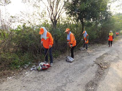 據(jù)了解,當天20名環(huán)衛(wèi)工人每人手拿垃圾撿拾器和垃圾袋,從八公山風景區(qū)北門開始,一直清理到景區(qū)北路的張樓出口,沿路撿拾塑料袋、飲料瓶、枯樹枝等垃圾雜物,遇到荊棘密布地方,就彎腰用手掏。經(jīng)過4個多小時的集中行動,風景區(qū)道路沿線環(huán)境面貌得以改善。