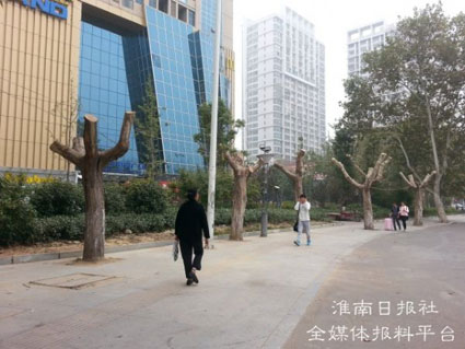 接到反映后,淮河早報(bào)、淮南報(bào)業(yè)新聞網(wǎng)記者當(dāng)天下午來到現(xiàn)場(chǎng)。在現(xiàn)場(chǎng),淮河早報(bào)、淮南報(bào)業(yè)新聞網(wǎng)記者看到,5棵粗大的法梧樹枝全部被鋸掉,只留下光禿禿的樹干?吹5棵粗大的法梧被鋸,經(jīng)過該處的不少市民都感到很詫異和痛惜!斑@么大的樹,得多少年才能長(zhǎng)出來。∠M嚓P(guān)部門查查,是不是人為破壞的?”市民王先生說,“根據(jù)被鋸的樹干的情況判斷,應(yīng)該是最近剛發(fā)生的。”