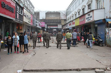 10月23日上午,當記者趕到八仙街時,看到原本擁堵不堪的八仙街通暢了,占據(jù)在道路中間的商販不見了。在八仙街的北端,記者看到原本蓋在大理石路面上的違建房屋已經(jīng)被拆除了,只留下一塊塊房屋的地基,沿街兩側(cè)商鋪門前也十分整齊,出店經(jīng)營的現(xiàn)象沒有了,道路中間看不到一個商販擺攤,這條老商業(yè)街面貌完全改變了。據(jù)在現(xiàn)場巡查的市安防應急中心負責人告訴記者:“為了打通八仙街這條堵了十多年的消防通道,在八公山區(qū)政府的組織和指揮下,我們安防應急中心配合八公山區(qū)城管在今天上午對在規(guī)定時間內(nèi)拒不自行拆除的違章搭建進行了依法拆除,對出店經(jīng)營的商戶進行勸導,對占道經(jīng)營的攤位進行驅(qū)離,不允許路面上有一個占道攤販,使這條堵了十多年的消防通道恢復了通暢。”