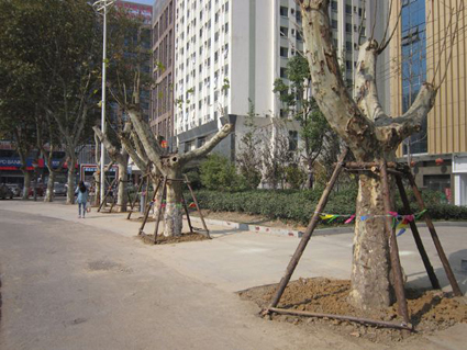 10月26日,早報(bào)熱線以《5棵40年法梧被鋸頭?》為題,報(bào)道了網(wǎng)友在淮南日報(bào)社全媒體報(bào)料平臺反映的,淮南火車站北邊海沃世貿(mào)商城旁5棵40年法梧被鋸一事。近日,記者看到,園林部門將原來被人惡意破壞致死的法梧移走后,已在原地重新栽植了5棵同等規(guī)格的法梧。