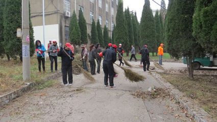 圖為:志愿者們正在對(duì)丁山小區(qū)的環(huán)境進(jìn)行集中清理。