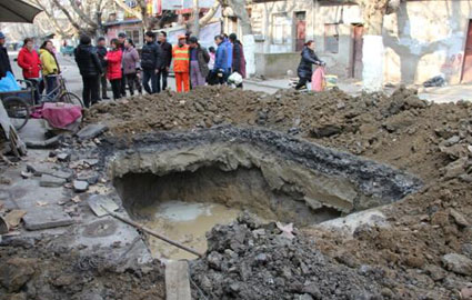 圖:田大北路上的施工大坑未設(shè)任何警示和防護措施導(dǎo)致行人墜入坑中。