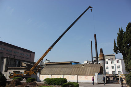 圖一:對燃煤鍋爐煙囪進行拆除。