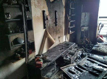 現(xiàn)場:大火過后屋內(nèi)被燒得一片狼藉