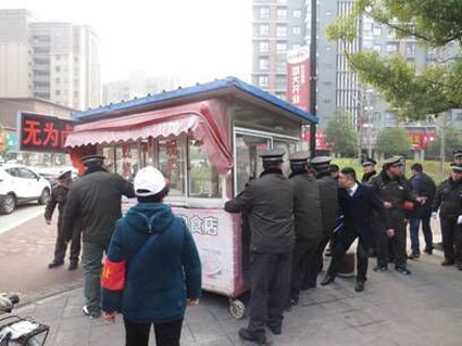 對于該路存在的問題,田區(qū)城管行政執(zhí)法局高度重視,于2015年12月份中下旬便開始籌劃整治。該局在成功借鑒其他攤?cè)狐c整治,特別是淮河新城一期整治成功經(jīng)驗的基礎(chǔ)上,結(jié)合該路段實際情況,統(tǒng)籌分析,制定了“宣教為主、查處為輔,疏堵結(jié)合,定點安置”的整治方針。一方面在充分考慮周邊居民生活習慣的基礎(chǔ)上,在該路北段劃定一片區(qū)域,用于規(guī)范擺放;另一方面對沿街所有出店、占道經(jīng)營當事人進行宣傳教育。在前期宣傳取得較好成效的基礎(chǔ)上,該局本著人性化執(zhí)法原則,專門給各類經(jīng)營戶留出10天時間,用于處理積存貨物,做好撤離準備等。