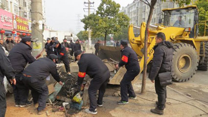 對此,經(jīng)過深入宣傳、督促自行整改后,1月18日下午,八公山區(qū)城管行政執(zhí)法局組織城管隊(duì)員、環(huán)衛(wèi)工人、安防人員40多人,出動(dòng)環(huán)衛(wèi)鏟車1臺,雇用垃圾清運(yùn)車輛2臺,集中開展了大瓜地新淮小區(qū)門口周邊環(huán)境整治。整治期間,執(zhí)法人員對該區(qū)域占道搭棚、占道經(jīng)營攤點(diǎn)、暴露垃圾等進(jìn)行了集中清理,重點(diǎn)整治小區(qū)出入口道路“腸梗塞”問題。據(jù)悉,該整治行動(dòng)歷時(shí)2個(gè)多小時(shí),共清理亂堆亂放、暴露垃圾8處,清運(yùn)垃圾雜物6車,拆除占道搭棚10處,取締流動(dòng)攤點(diǎn)4處,清理石墩等道路障礙物3處,拆除破舊燈籠、條幅4處,該區(qū)域臟亂差環(huán)境得到有效改善。