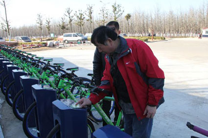 舜耕山風(fēng)景區(qū)首批100輛公共自行車系統(tǒng)昨正式投入使用