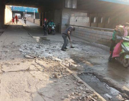 1月26日,有市民致電淮河早報熱線,稱在泉山鐵路下穿橋東側的非機動車道上,有一段路面結著厚厚一層冰,行人騎車經過非常不便,希望相關部門能及時鏟除。對此,淮河早報、淮南網記者到現場了解情況后遂向相關部門進行了反饋,工作人員也表示將聯系相關單位到現場處理,及時將結冰鏟除。