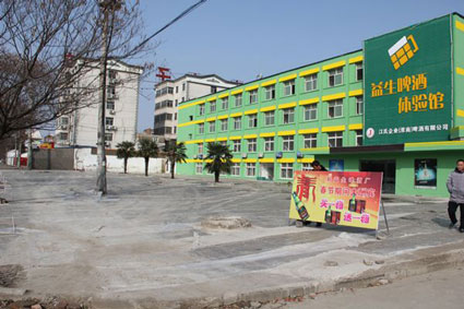 淮河早報(bào)、淮南網(wǎng)記者于2月14日上午趕到現(xiàn)場。在原啤酒廠門前,淮河早報(bào)、淮南網(wǎng)記者看到,自原啤酒廠大門以西的綠化帶已經(jīng)完全被鏟除,綠化帶和人行道全部被做成水泥地面。而啤酒廠的院墻也被拆除,原先辦公樓已經(jīng)被改造成為一個(gè)啤酒體驗(yàn)館,這樣一來,被占用的綠化帶和人行道就成為啤酒體驗(yàn)館的門前廣場,而在新鋪的水泥地面每隔幾米就留有一個(gè)電線接頭。