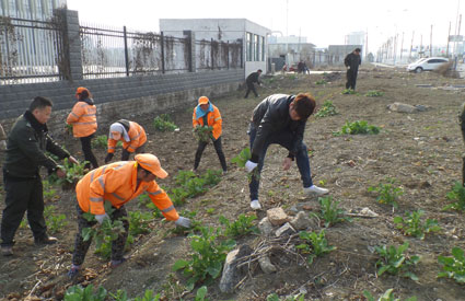 近期,在朝陽東路上,又有附近的住戶和單位工作人員利用暫未進行綠化的區(qū)域擅自開墾,種植油菜、白菜、大蒜等農(nóng)作物,有的種植戶還給農(nóng)作物上土肥,氣味難聞,十分影響市容環(huán)境。清理前,執(zhí)法人員多次沿路排查,確定種植的相關(guān)人員,與之開展耐心細致的宣傳教育,全力爭取群眾的理解和支持。行動當天,按照“可利用的自行采摘,無利用價值的統(tǒng)一清除”的原則,執(zhí)法人員在30名環(huán)衛(wèi)工人的配合下,與種植戶一起徹底清理了農(nóng)作物。隨后,開發(fā)區(qū)城管行政執(zhí)法大隊又通過多方協(xié)調(diào),運來黃土,對清理出來的場地進行了覆蓋,美化園區(qū)環(huán)境。