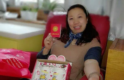 圖為趙女士獻(xiàn)完血后展示獻(xiàn)血證。