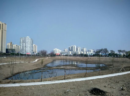 五一公園位于朝陽東路以南、田大路以東、建設路以西,是市民們稱之為“五一大塘”的地方,周邊交通發(fā)達、高樓林立、小區(qū)眾多。3月18日淮河早報、淮南網(wǎng)記者進行實地探訪時,園內(nèi)已鮮見大型工程機械、車輛的蹤影,只在靠西側(cè)的坡地上見到一輛挖掘機正在對土地進行平整,為下一步植綠做準備。