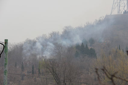 圖五:焚燒冥幣燃放爆竹導(dǎo)致漫山煙霧