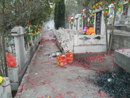 眼下,各個墓地都有各自的規(guī)定,尤其清明節(jié)又是森林防火的重要時段,因此人們進入墓地祭掃一般都被要求禁止燒紙、燃放鞭炮。但是,不少市民依舊我行我素,根本不管這些規(guī)定。