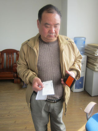 圖:陳先生展示在網(wǎng)上購(gòu)買到的問(wèn)題手機(jī)