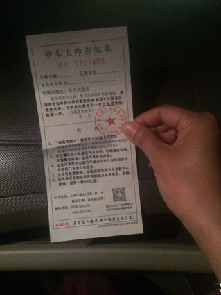 4月2日中午,陳先生在山南新區(qū)一家飯店吃飯,他的車子和其它車輛一樣就停在飯店門口的空地上,一頓飯吃完,陳先生準備開車離開,突然發(fā)現(xiàn)車窗上夾了一張長方形的紙張,這張紙的大小、樣式和“車輛罰款單”一個模樣,上面清晰的“告知單”幾個字讓陳先生一下子冒了冷汗。他左右看看兩邊的車輛,發(fā)現(xiàn)每輛車上都夾了一張,難道是城管貼的?陳先生將“告知單”拿在手里,乍一看,上面有“車輛號牌”、“停車地點”的字樣和紅色的章印,陳先生懊惱地想:吃頓飯100元就這樣沒了。再仔細看一下,陳先生一下子被逗樂了,原來這是一家車輛服務(wù)中心做的小廣告,標題是“停車太帥告知單”(如圖),告知單上印有該車服中心的各種服務(wù)內(nèi)容。