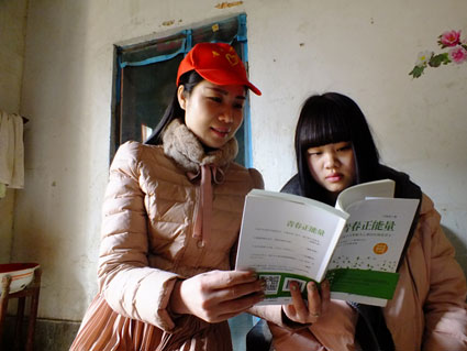 在石夢蝶家中,志愿者們與小姑娘一起做游戲、讀詩歌,讓這花季女孩感受到書香和外面世界的豐富多彩。