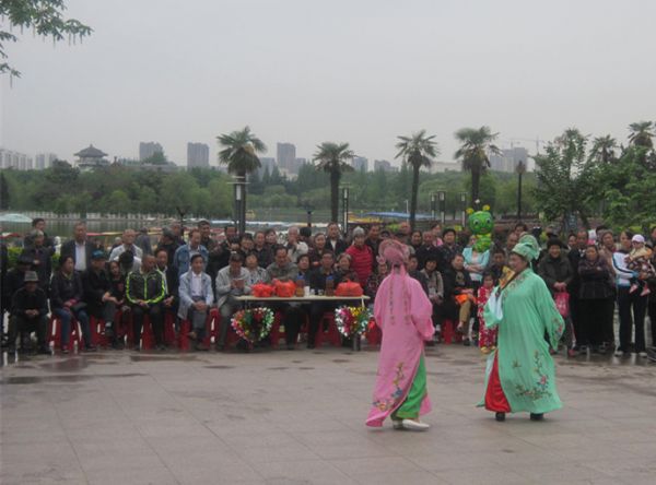 17日下午,雨后的龍湖景區(qū)景色優(yōu)美,游人不斷。景區(qū)一處廣場上熱鬧非凡,來自淮南夕陽紅秧歌隊的老年朋友們正載歌載舞歡迎21位遠(yuǎn)道而來的客人。