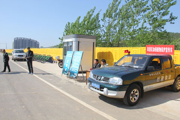 淮河早報(bào)、淮南網(wǎng)記者由老龍眼濕地公園附近入口剛進(jìn)入環(huán)山路,就看見有行政執(zhí)法人員沿環(huán)山路巡查。據(jù)舜耕山風(fēng)景區(qū)管理處負(fù)責(zé)人告訴淮河早報(bào)、淮南網(wǎng)記者:“對(duì)于舜耕山風(fēng)景區(qū)內(nèi)植物的保護(hù),市委、市政府都非常重視,尤其是槐花花季。大量市民采摘槐花破壞野生槐樹資源的現(xiàn)象,市委常委、副市長(zhǎng)張祖保于4月15日,專門要求市園林部門繼續(xù)加強(qiáng)管理。市園林局專門抽調(diào)了近二十名行政執(zhí)法人員,進(jìn)入景區(qū)協(xié)助風(fēng)景區(qū)管理處在景區(qū)巡查,處罰市民采摘槐花的行為,目前為止,在景區(qū)內(nèi)巡查的人員已經(jīng)增至70余人。而且巡查時(shí)間也由原來早晨6時(shí)到晚8時(shí)改為早晨5時(shí)到晚8時(shí)。由于巡查力度增大,目前在景區(qū)內(nèi)采摘槐花的現(xiàn)象已經(jīng)基本杜絕。