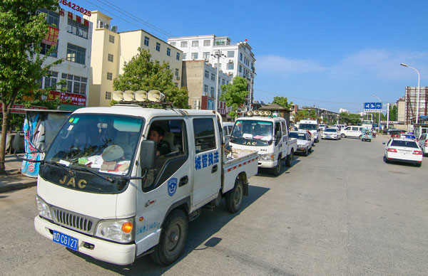 圖二:執(zhí)法宣傳車循環(huán)播放著相關(guān)法律法規(guī)