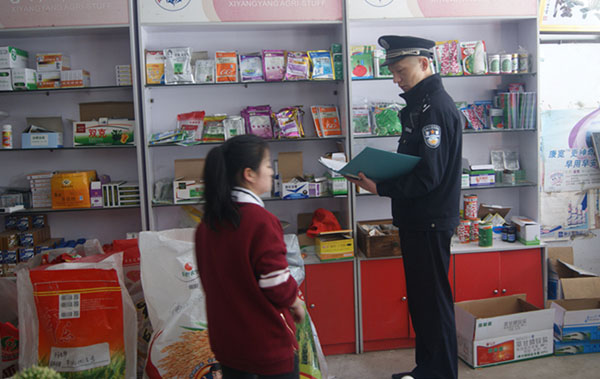 圖:民警排查農(nóng)資經(jīng)營(yíng)單位