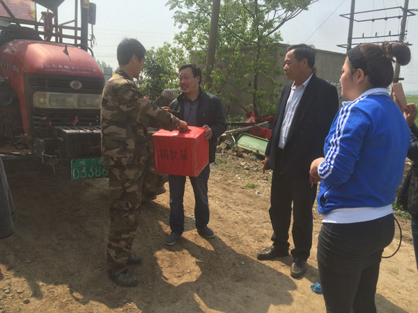 4月29日上午,幾位村干部和錢文虎在窯河村挨家挨戶募集錢款,三五十、一兩百,村民們紛紛向捐款箱里投去愛心款,有的村民在捐款的同時(shí)還不忘對(duì)錢文虎說上一句暖心的話:“希望你的女兒早日康復(fù)!”