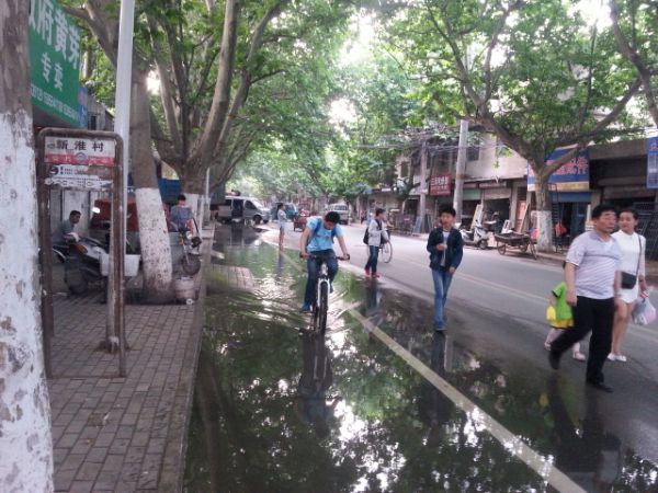 據(jù)附近一位商鋪的經(jīng)營(yíng)戶介紹,此處窨井往外排水已經(jīng)一天一夜時(shí)間了,可能旁邊的雨水井堵塞,水管就直接排放到馬路上,抽出來(lái)的水順著馬路任意流淌。由于附近部分路段地勢(shì)較為低洼,流水不能及時(shí)排入雨水井內(nèi),造成路面非機(jī)動(dòng)車道上出現(xiàn)積水。附近居民介紹,有的車輛從積水路面經(jīng)過(guò),由于速度很快,便濺起很多水花。從窨井里抽出的水直接排到路面上,不僅影響非機(jī)動(dòng)車輛通行,也影響到附近公交車站乘客乘車和附近商鋪經(jīng)營(yíng)。市民表示,“如此排水不能太任性”,并建議可以使用長(zhǎng)水管將水引到附近的雨水井內(nèi),避免水在馬路上任意流淌。