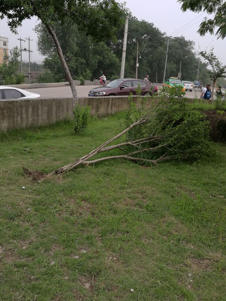 連日來,陰雨不斷,市區(qū)一些綠化樹在風(fēng)雨中“折腰”。6月2日上午,市民李先生電話反映淮河大壩一處景觀游園內(nèi)的景觀樹倒地了。
