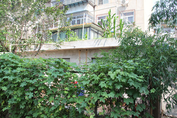 對于南嶺新村43號樓一單元東戶占用綠地拉院墻建房屋的事,淮河早報熱線于2015年3月以《占通道拉院墻全綠化為庭院》為題做過報道,當(dāng)時是接到其二樓的住戶舉報,經(jīng)過城管現(xiàn)場勘查確定,住戶在其一樓房屋東側(cè)占用小區(qū)通道及綠化帶拉院墻、建房屋。但是當(dāng)時房屋只建成圍墻,并未封頂。對于其違法建設(shè)的情況,田家庵區(qū)城管行政執(zhí)法局七中隊執(zhí)法人員明確表示“將于近期約談當(dāng)事人,勸其自拆,如果當(dāng)事人不拆,他們將采取依法拆除的措施。”事后,城管對違建曾經(jīng)給予拆除。而如今是否像市民所反映的那樣,不僅違建房已經(jīng)建成,而且二樓住戶還在違建房屋的屋頂上加蓋了陽光房,淮河早報、淮南網(wǎng)記者再次來南嶺新村進(jìn)行實地采訪。