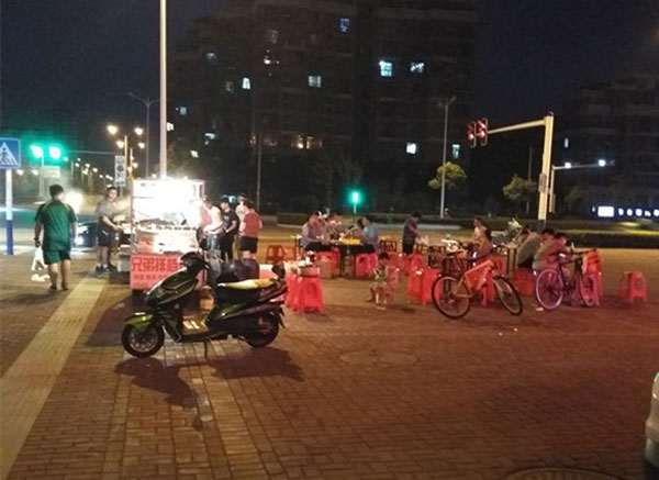 據(jù)一些散步的市民稱,這塊空地原本是一些跳廣場(chǎng)舞的市民活動(dòng)的地方,不知道怎么變成大排檔了,而且攤子還擺得那么大。還有一些市民對(duì)此處擺攤意見(jiàn)很大:“晚上我們經(jīng)常在這條路上散步,這搞了個(gè)燒烤攤,還是那種燒木炭的,這多污染環(huán)境。而且晚上老板一收攤,這里都是油漬和垃圾,時(shí)間長(zhǎng)了豈不是臟死了!