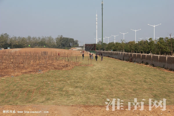 圖:淮河公園地面草皮和景觀樹木已經(jīng)基本種植完畢