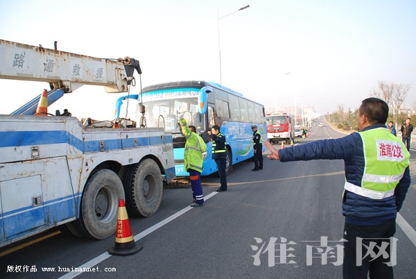 演練模擬淮南市公共交通有限責(zé)任公司一輛山南中央公園至焦崗湖景區(qū)的39路公交車運(yùn)行至高速路段時,突發(fā)故障,車輛停止運(yùn)營,車上乘客情緒激動,紛紛要在高速公路下車,現(xiàn)場情況十分危急......39路公交車駕駛員陳濤立即開啟危險報警閃光燈,把車輛停緊急停車帶。在安撫車內(nèi)乘客情緒后,陳濤迅速在來車方向距本車150米處設(shè)置停車警告標(biāo)志,同時向車隊報告,并撥打高速公路施救電話和122報警電話,等待救援。10分鐘后,救援車輛、消防車、交警支隊高速大隊巡邏車陸續(xù)到達(dá)。交警拉起警戒線,封鎖現(xiàn)場,維持秩序,對現(xiàn)場實行臨時管制;茨鲜泄步煌ㄓ邢挢(zé)任公司領(lǐng)導(dǎo)得悉情況后趕到現(xiàn)場,并啟動了相應(yīng)的應(yīng)急預(yù)案,安排車輛前來轉(zhuǎn)運(yùn)走乘客、故障公交車被施救單位順利拖走,現(xiàn)場恢復(fù)正常。