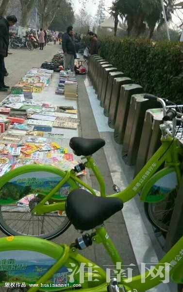 1月2日,微博網(wǎng)友“疏雨滴梧桐1104” @淮南日報社反映,在龍湖景區(qū)東門人民北路西側的人行道上,一處公共自行車站點被一些攤點占據(jù)擺攤,影響公共自行車存放,并上傳了一張拍攝的現(xiàn)場照片;春釉鐖、淮南網(wǎng)記者通過照片看到,一個賣書的攤販將書籍鋪開擺放在公共自行車站點前,足足占據(jù)了12個自行車存取樁。