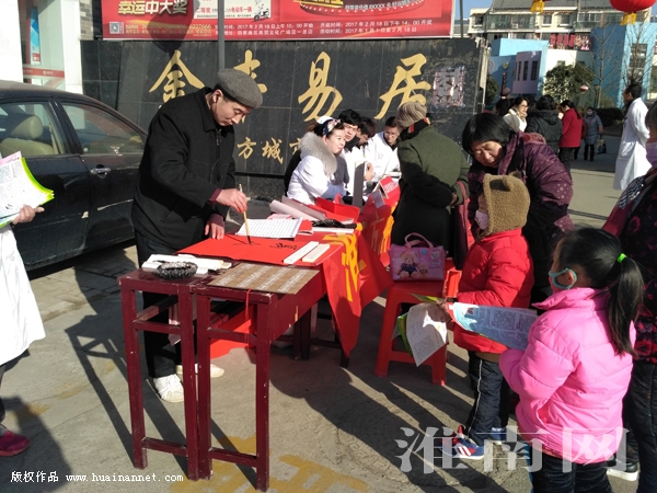 這廂忙著寫春聯(lián),那邊的免費(fèi)測血壓、咨詢問診的也被圍得水泄不通。“大媽,你這血壓有點(diǎn)高,平時(shí)吃藥嗎?”“平時(shí)吃,就感覺這兩天怎么頭有點(diǎn)暈。”“那您得小心點(diǎn),得到醫(yī)院檢查檢查,看看藥的劑量是不是要調(diào)整一下,或者是有別的什么情況!薄昂玫模|女,回頭我去門口那個(gè)診所去看看!边@個(gè)大媽剛走,后面的大爺就已經(jīng)捋好了袖子,因?yàn)樘鞖夂,醫(yī)務(wù)工作者深怕大爺感冒了,趕緊為大爺測量血壓,并告之血壓情況。