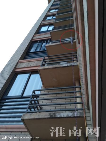 就在采訪時,一名住在廣弘城小區(qū)的業(yè)主請淮河早報、淮南網(wǎng)記者前往其家,據(jù)該業(yè)主稱,小區(qū)里有很多拉電線充電的,而他所住的這幢樓就特別危險。原來該業(yè)主住在8樓,而就在他家南陽臺的墻邊竟然有兩條長長的電線猶如從天而降,淮河早報、淮南網(wǎng)記者抬頭往上看,粗略地數(shù)了一下,這兩條電線至少是從14樓以上甩下來的,而且其中一條電線中間連著排插,可能是電線不夠長,利用兩條排插相連的。該業(yè)主表示這兩條電線也是他最近無意間發(fā)現(xiàn)的,而且這兩條電線一直在外面懸著,這讓他感覺到仿佛有一個定時炸彈在他家外面,太危險了。
