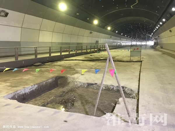 圖為市政部門對洞山隧道一處路面進(jìn)行整修。